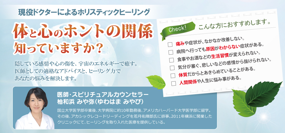 宇宙や地球のエネルギーを借り、それらのネガティブな感情を癒すことで、症状を楽にしていくことが「ゆわはま」のホリスティックヒーリングです。